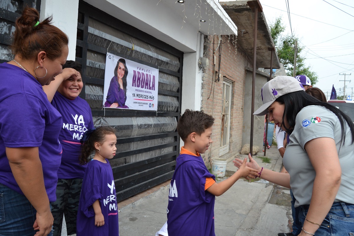 NUEVO LAREDO, Tam.- A paso firme y seguro, la candidata a la presidencia municipal Yalheel Abdala Carmona, por la coalición “Fuerza y Corazón por Tamaulipas” recorrió en el tercer día de campaña la colonia Las Torres para promover el voto casa por casa y escuchar a los ciudadanos de manera clara y directa, igual quejas que sugerencias para su plataforma de trabajo si el voto la favorece el 2 de junio.