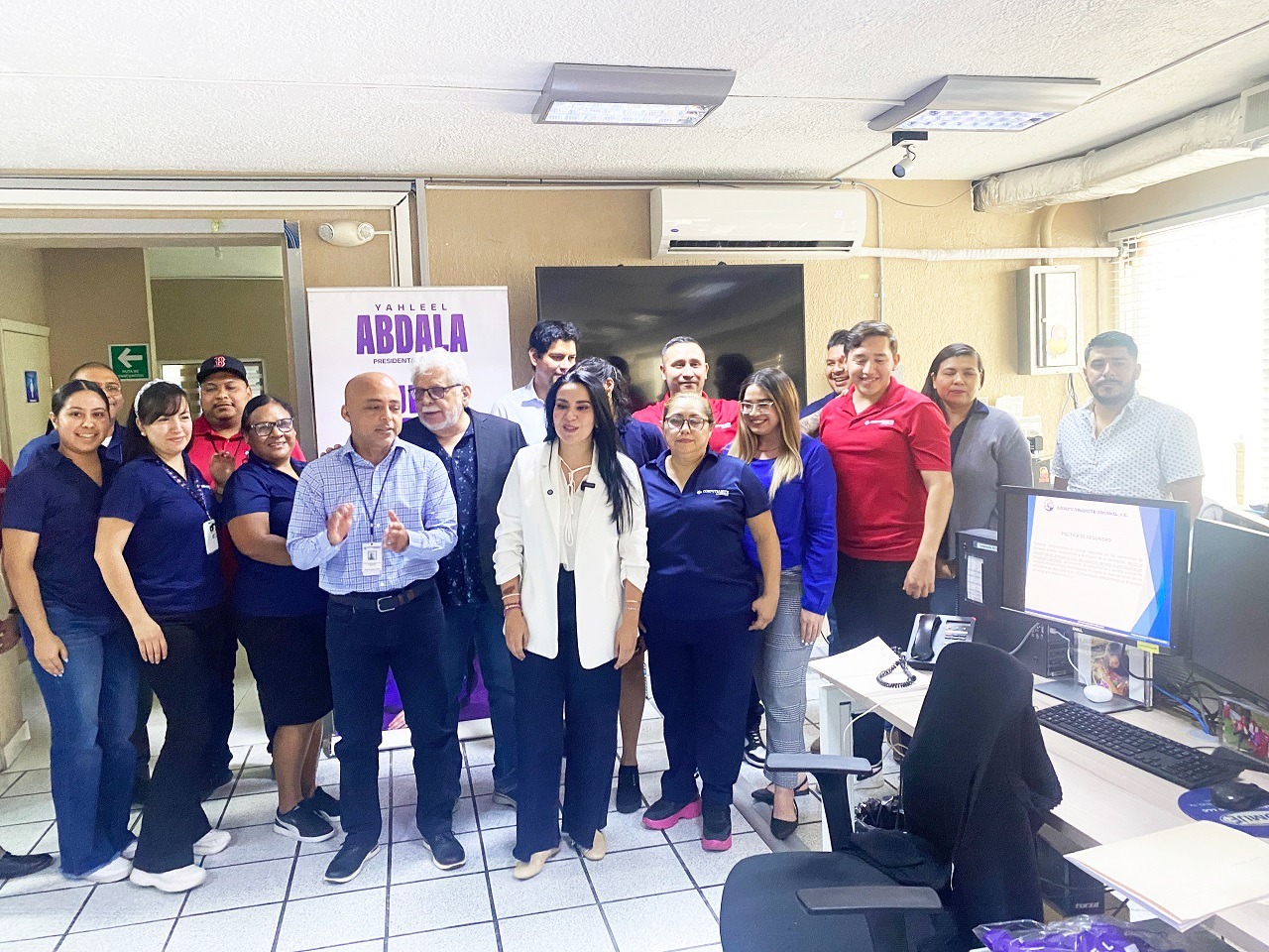 Por la mañana, Yahleel Abdala se reunió con trabajadores de la empresa Compu-Tec para presentar su proyecto de trabajo, en el que incluyó acciones concretas para impulsar el desarrollo y sustentabilidad de la ciudad y refrendó su compromiso de trabajar en favor y defensa del ciudadano, con la finalidad de mejorar la calidad de vida de las familias, la infraestructura urbana, apoyos a emprendedores y apoyos a la educación, principalmente.