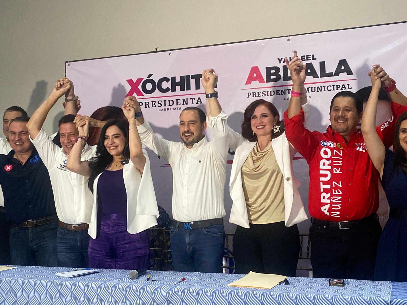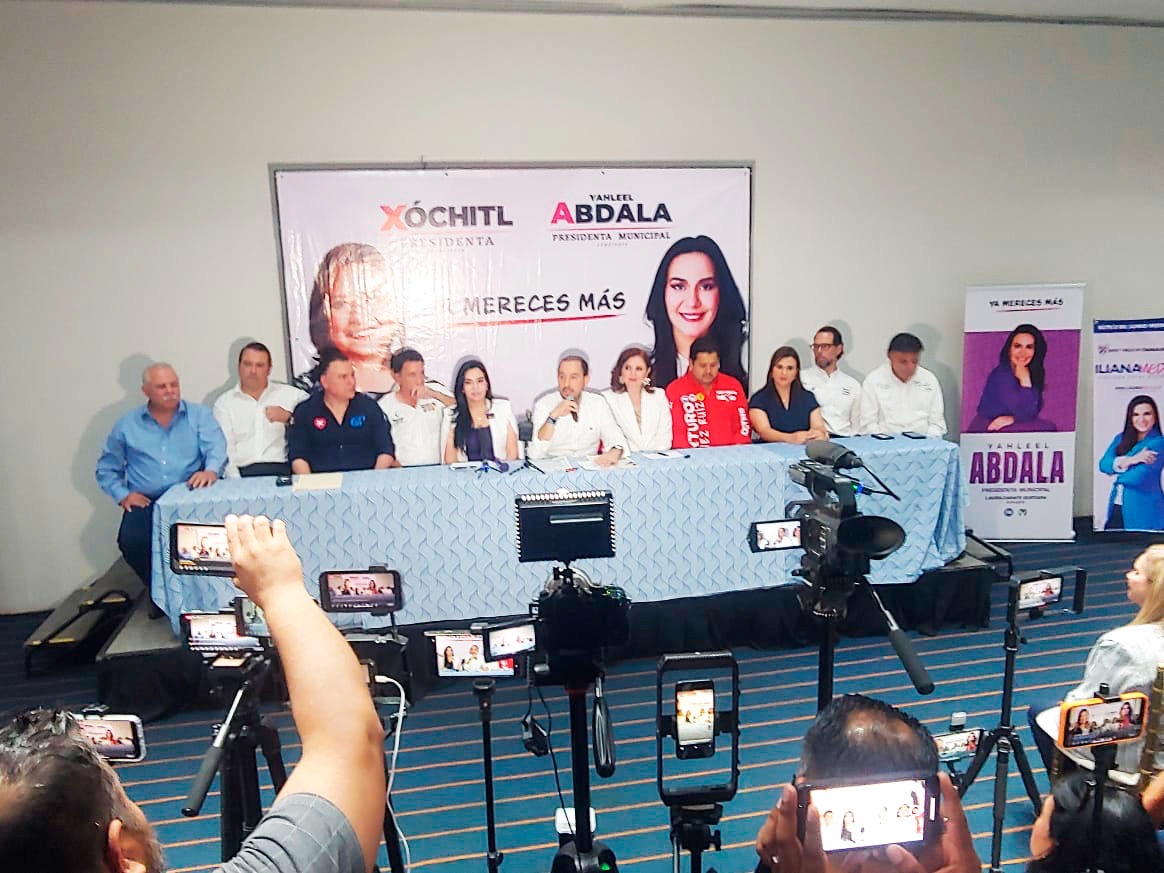 En la rueda de prensa estuvieron presentes los candidatos a senadores, Imelda San Miguel Sánchez y Arturo Núñez Ruiz; el coordinador estatal de la Campaña de Xóchitl Gálvez, Gerardo Peña; los candidatos a diputados federales César Verástegui y Manuel Canales Bermea; los candidatos a diputados locales, Iliana Medina García, Jorge Pérez Santos y Héctor Canales; el coordinador de la bancada de diputados panistas con licencia, Félix García, y Agustín Chapa Torres, dirigente local del PAN.