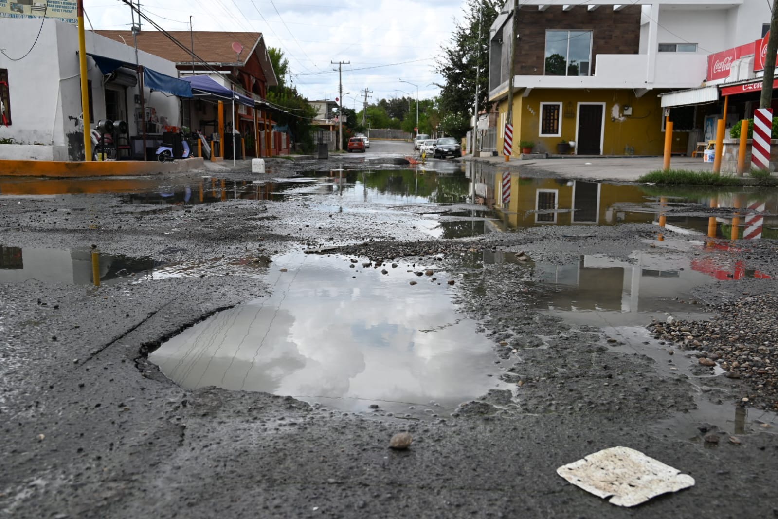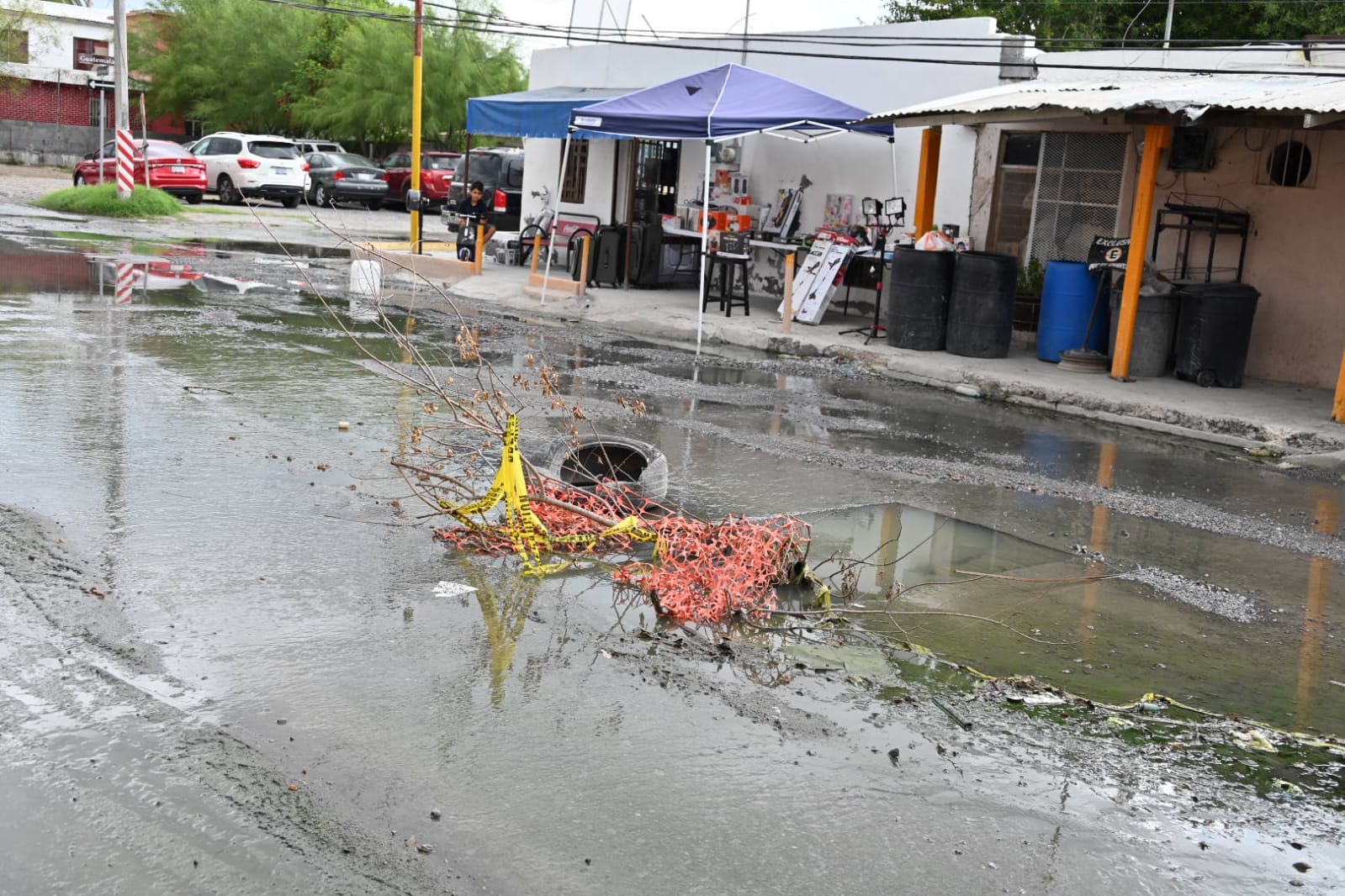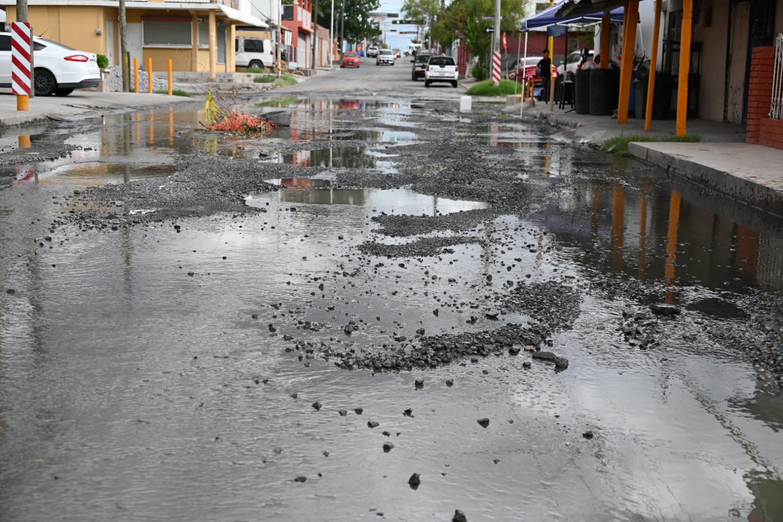 La situación es igualmente crítica en la avenida Josefa Ortiz de Domínguez, desde Bolívar hasta Washington, donde los baches causados por el escurrimiento de las alcantarillas brotadas han convertido la vía en un desafío peligroso.