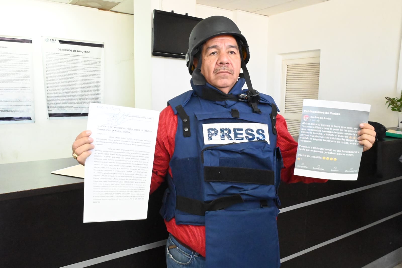 En un segundo caso, perpetrado por Carmen Lilia y Carlos de Anda, el periodista Abisai Rubio, presento su denuncia ante el temor que puedan la primera autoridad cometer algún daño en su persona, familia o bienes materiales, y se espera que la justicia pueda dar seguimiento para fincar responsabilidades en el funcionario público.