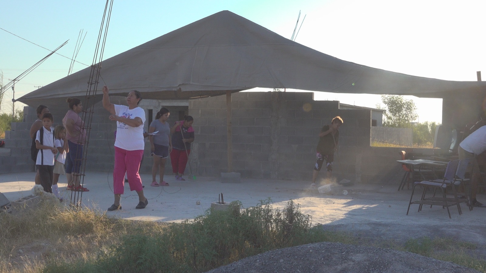 En palabras de Marlene Canales, madre de familia: “Estamos batallando aquí, pues ya está viendo que están debajo de la lona con calores, con fríos, con lluvias y pues aquí es donde le pedimos a la presidenta que nos ayude a hacer la escuela. No pedimos mucho, ya tenemos medias paredes levantadas; queremos que nos ayude a levantarla para que los niños tengan clases dignas de recibir y puedan salir adelante.”