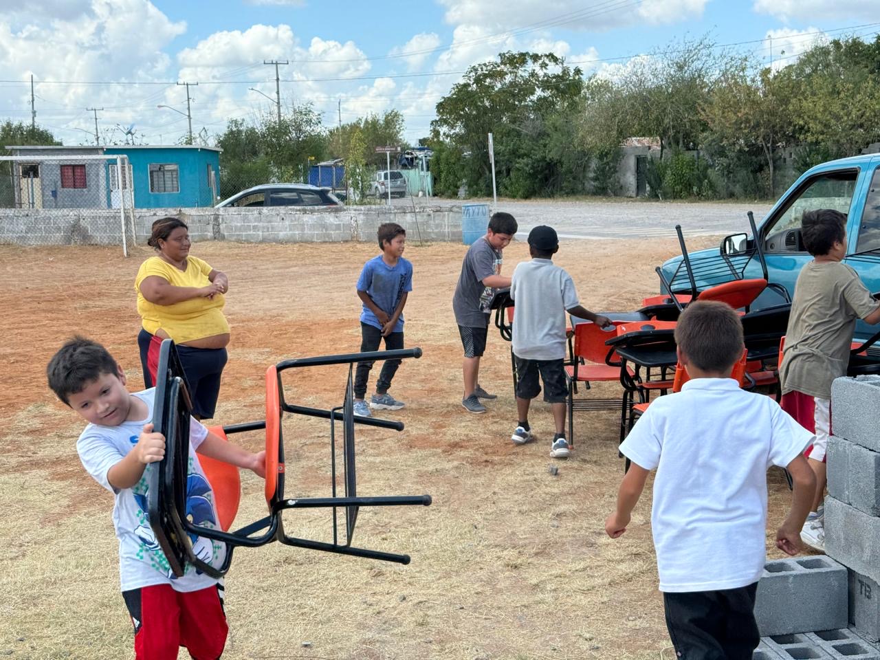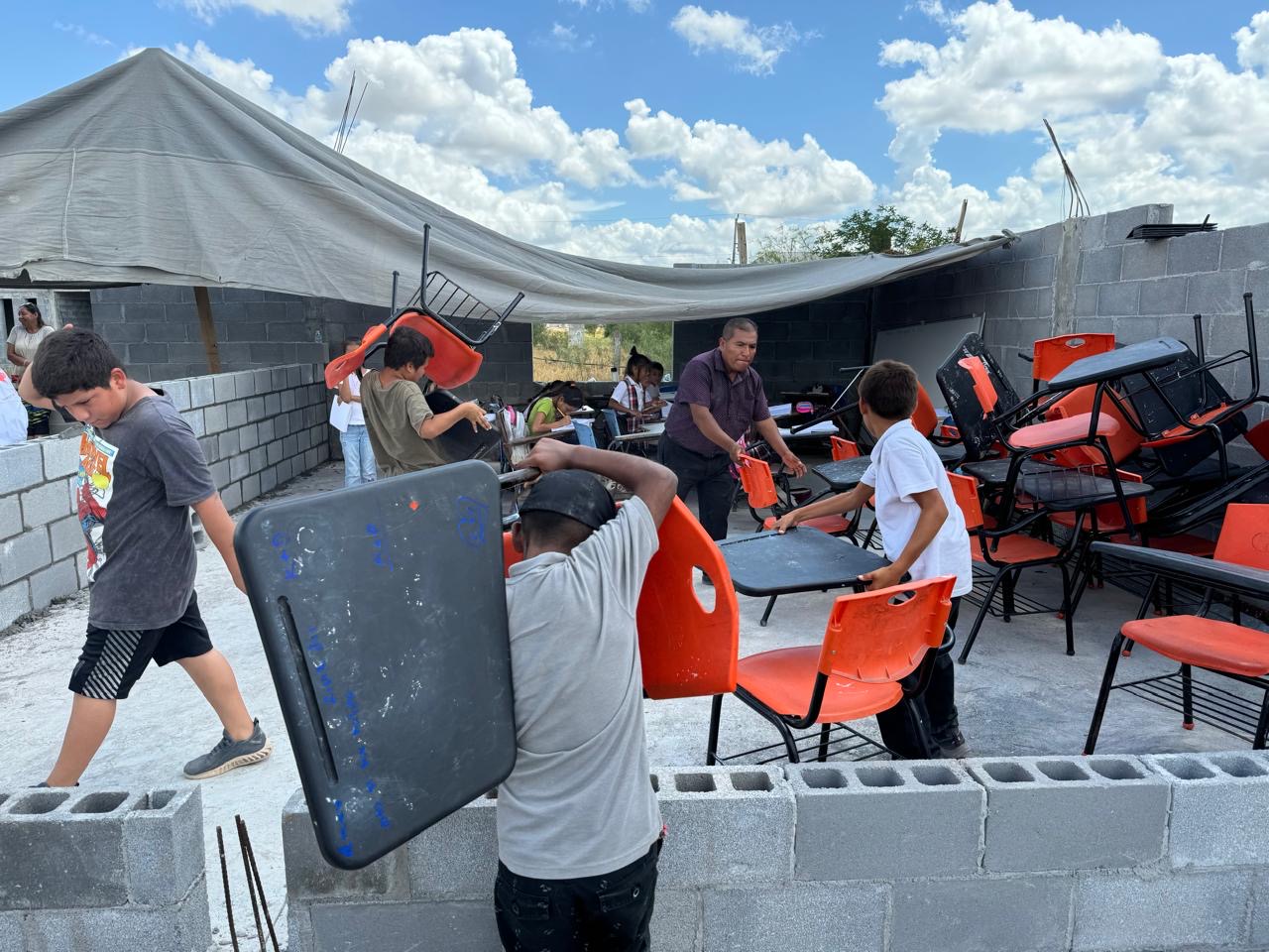 Además, la comunidad educativa ha mostrado un notable compromiso. El profesor Joaquín Medina Untiveros, director de la escuela profesora Dora Gallegos Escalante, expresó la importancia del apoyo: “Nos unimos para apoyar a nuestros compañeros en Praderas del Mezquital. Hemos donado 40 mesa bancos y continuaremos aportando lo necesario para asegurar que los niños tengan un entorno educativo digno.”