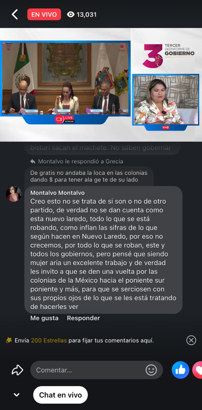 “Es preocupante ver cómo se manipulan las cosas para dar una mejor imagen. La obligación de ver la transmisión bajo amenaza y la aparente falta de interés real por parte de los familiares de la alcaldesa dicen mucho sobre la transparencia de este gobierno,” criticó Javier Gómez, otro vecino de Nuevo Laredo.