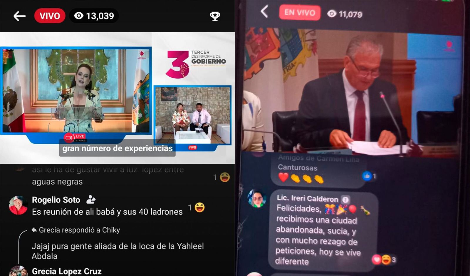 Funcionarios y empleados municipales fueron obligados a ver la transmisión oficial bajo amenazas de despido. Además, familiares cercanos de la alcaldesa, como su esposo Óscar Mario Hinojosa y su cuñado Rolando Salinas, aunque presentes en la ceremonia oficial, estaban «viendo» el evento en Facebook. Esta situación generó confusión y escepticismo entre los ciudadanos, quienes cuestionaron si estos actos reflejan una preocupación real por la veracidad del informe.