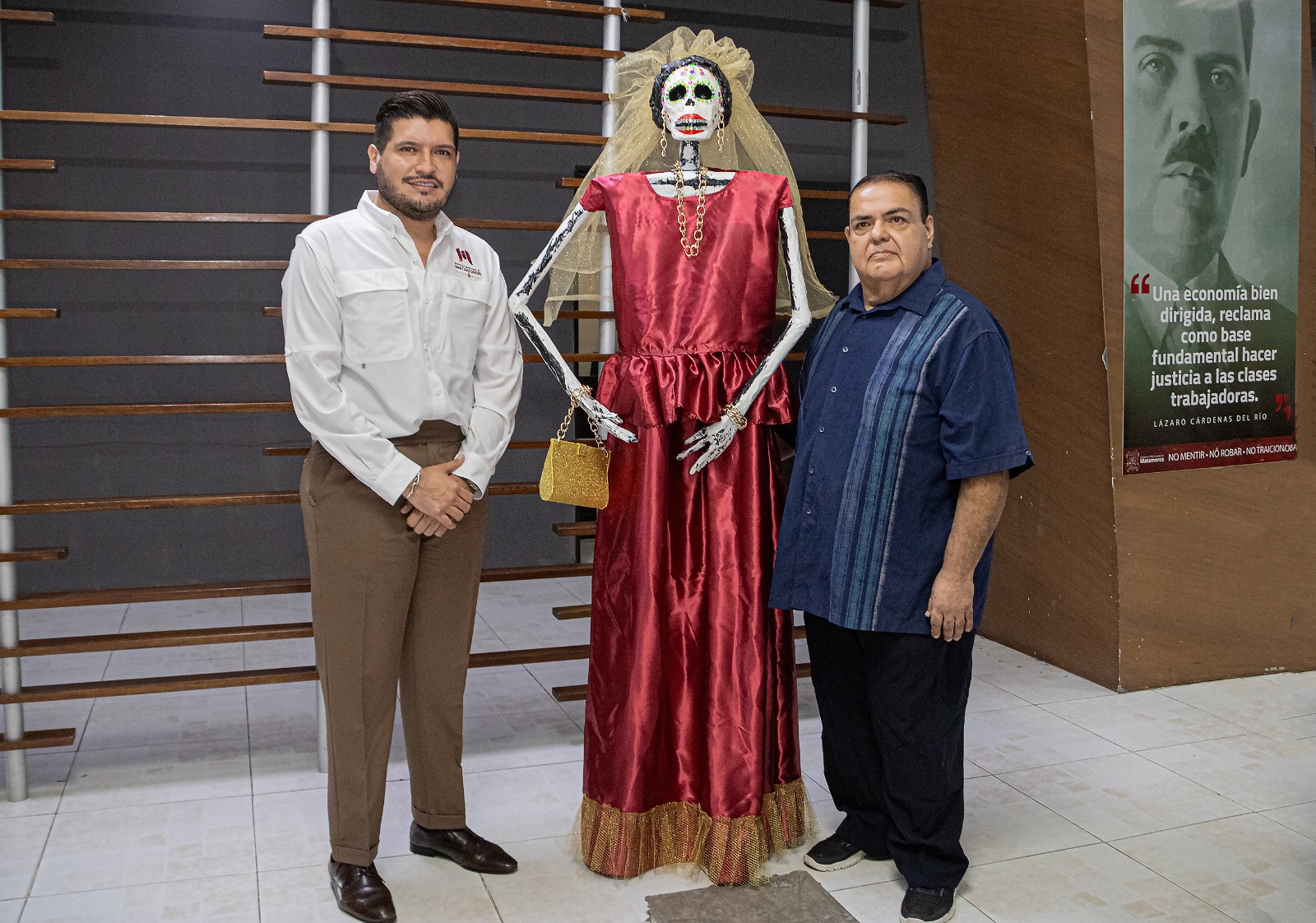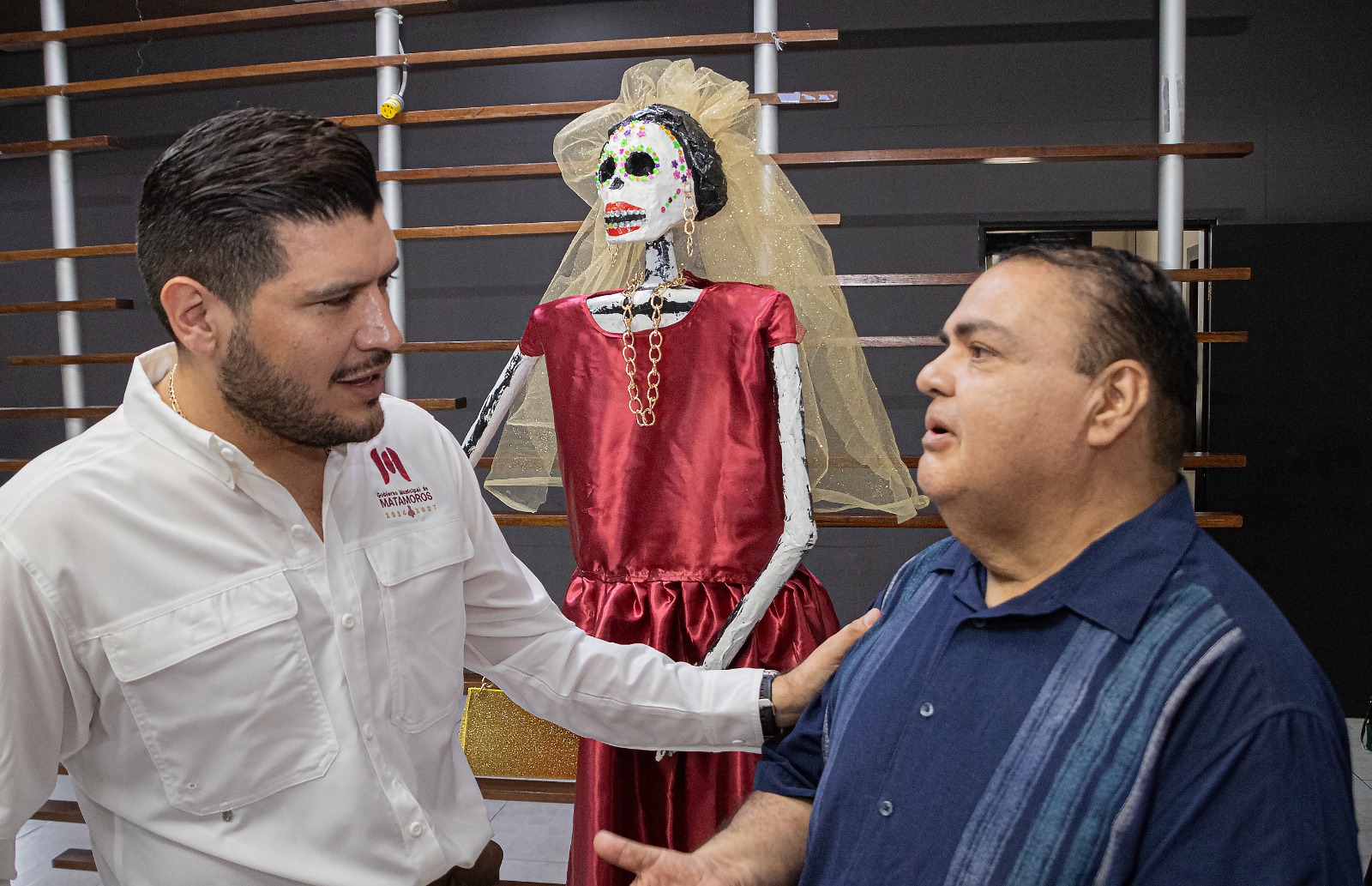 El Mtro. Munive decidió regalar su Catrina al alcalde de Matamoros, Alberto Granados. La escultura será destinada, ya sea para decorar su oficina o para formar parte de las ofrendas que se monten en el marco del Día de Muertos.