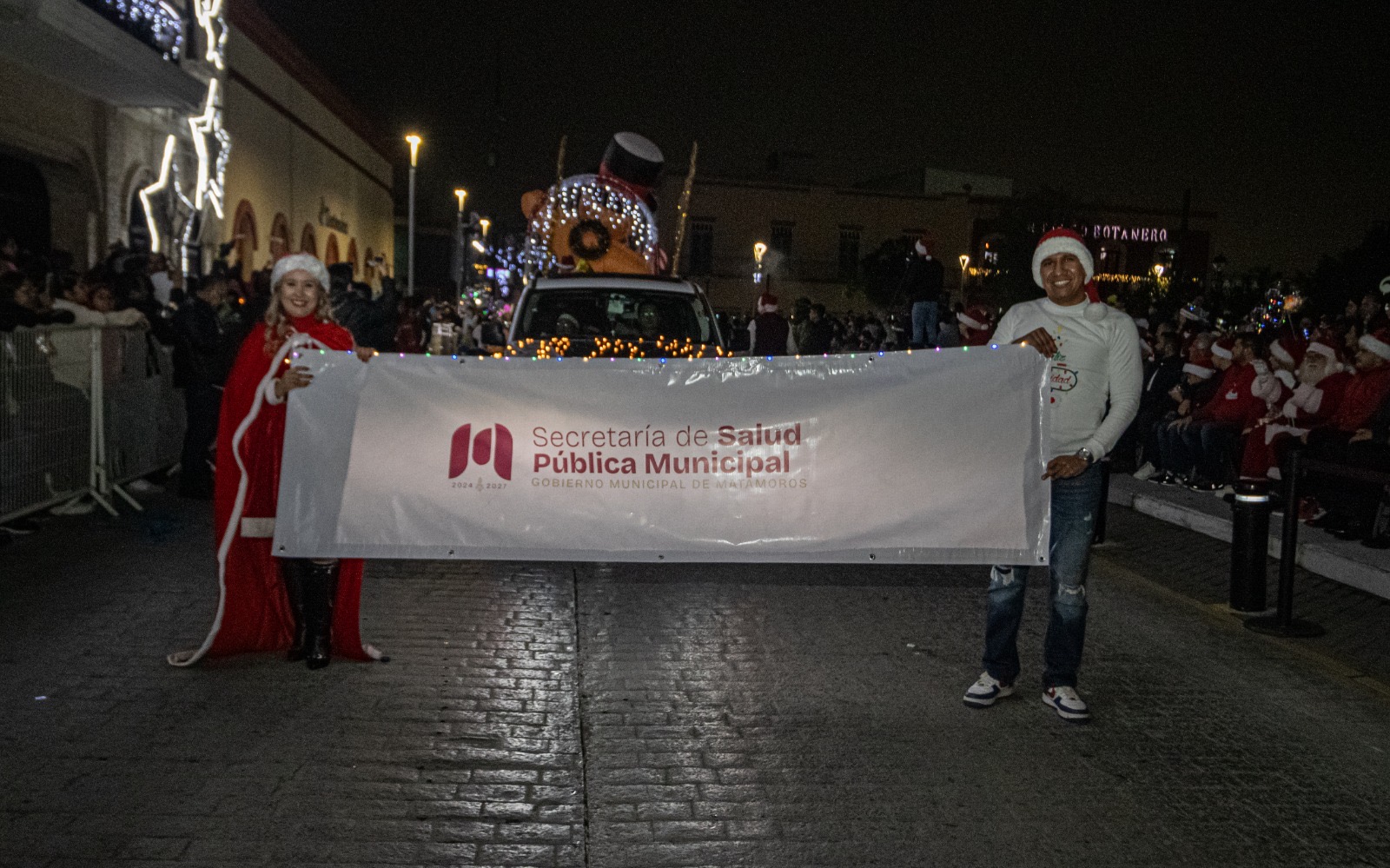 Los cientos de matamorenses que se dieron cita para disfrutar de este gran espectáculo se dejaron envolver en la alegría y juego de luces que presentaron cada uno de los carros alegóricos que dieron vida al Desfile Navideño 2024.