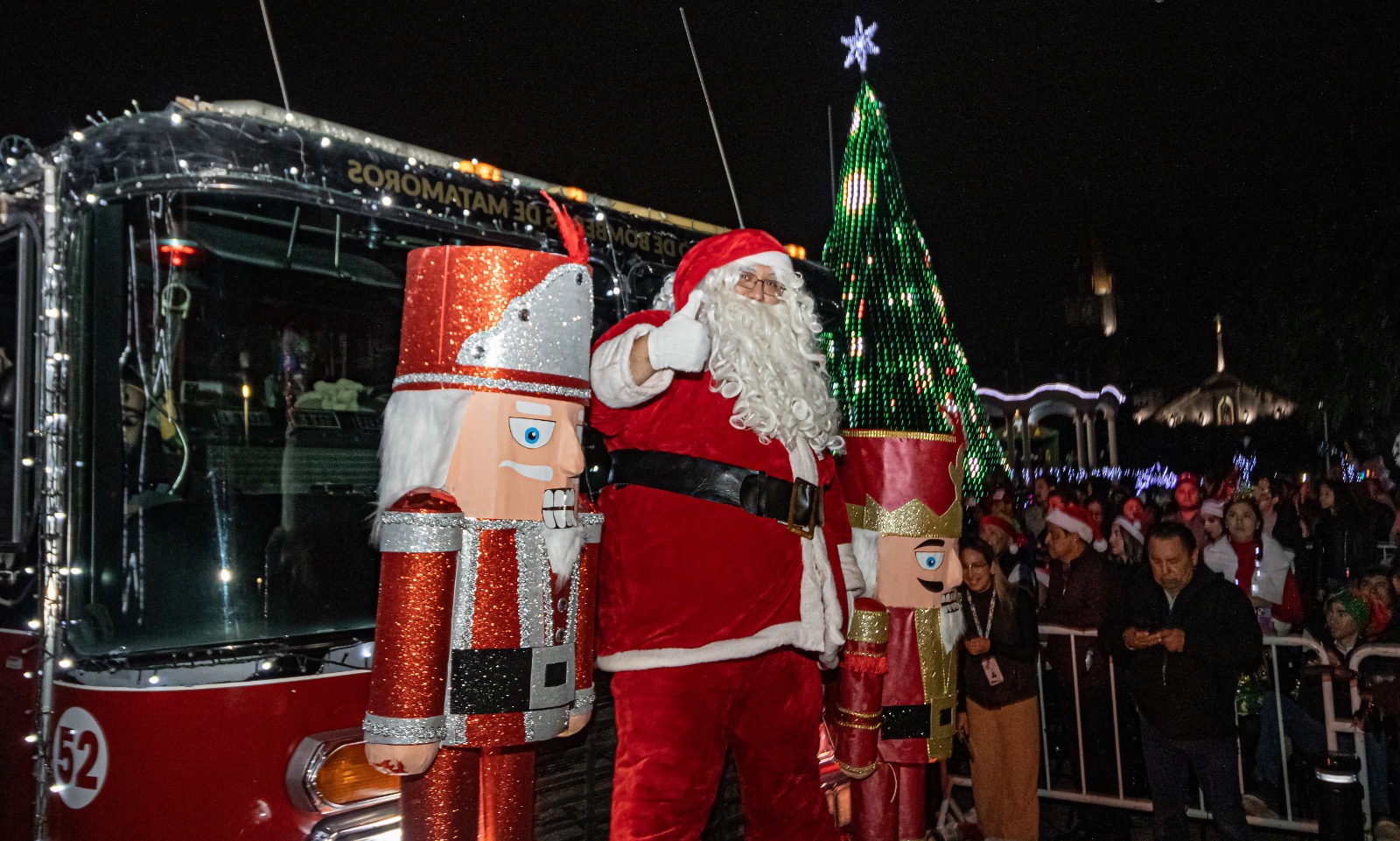 Matamoros, Tamaulipas.- Una noche llena de magia, espíritu navideño, luces y alegría iluminó la ciudad con el arranque del Gobierno Municipal a las festividades navideñas; cientos de familias disfrutaron del encendido de un espectacular pino lleno de luces animadas que regalaron un gran espectáculo a los presentes.