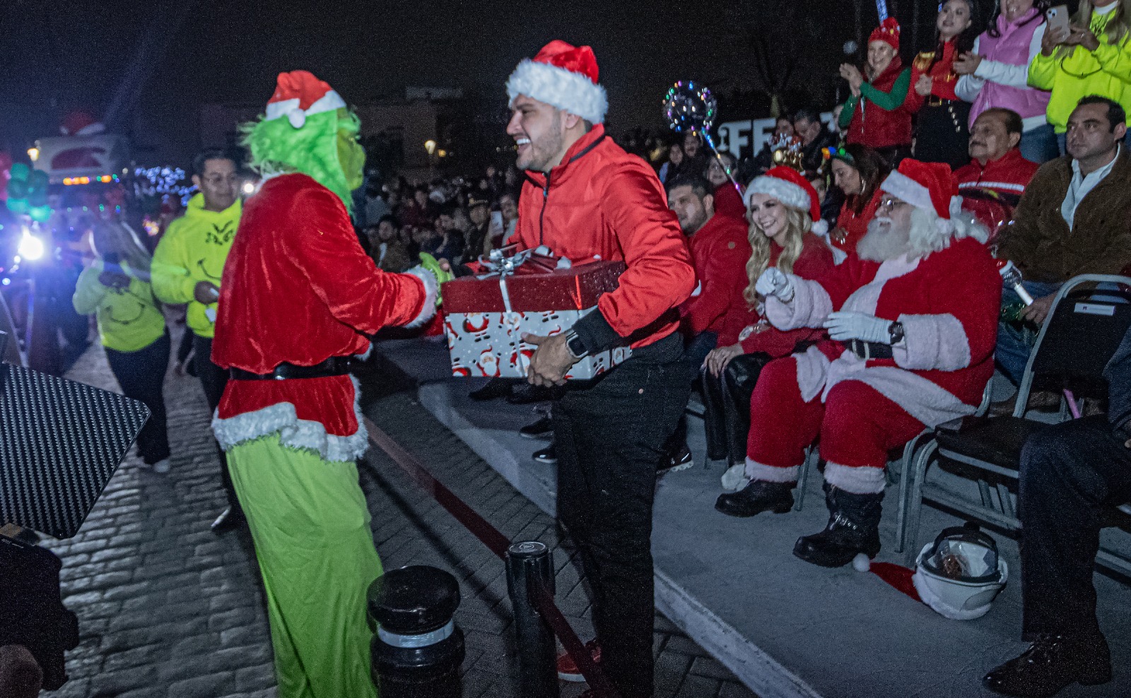 Las diversas secretarías del Gobierno de Matamoros e instituciones de educación básica, superior y medio superior regalaron a las familias bailes, vestuarios navideños, carros alegóricos y dulces en cada una de sus presentaciones.