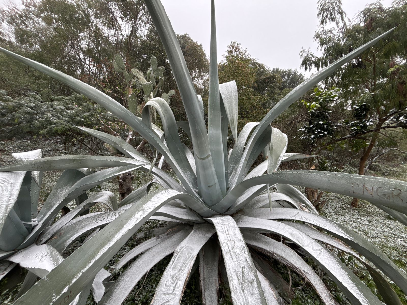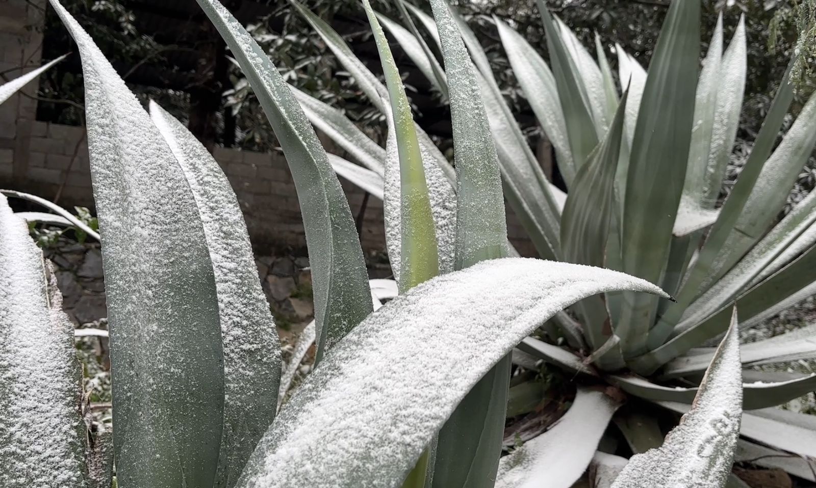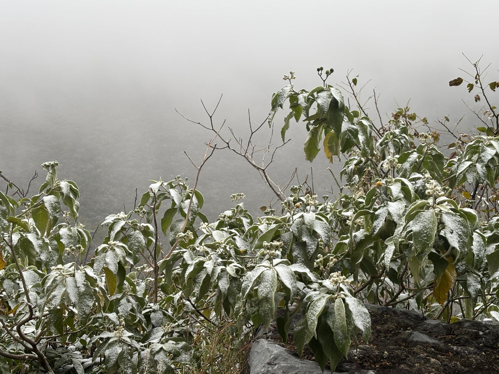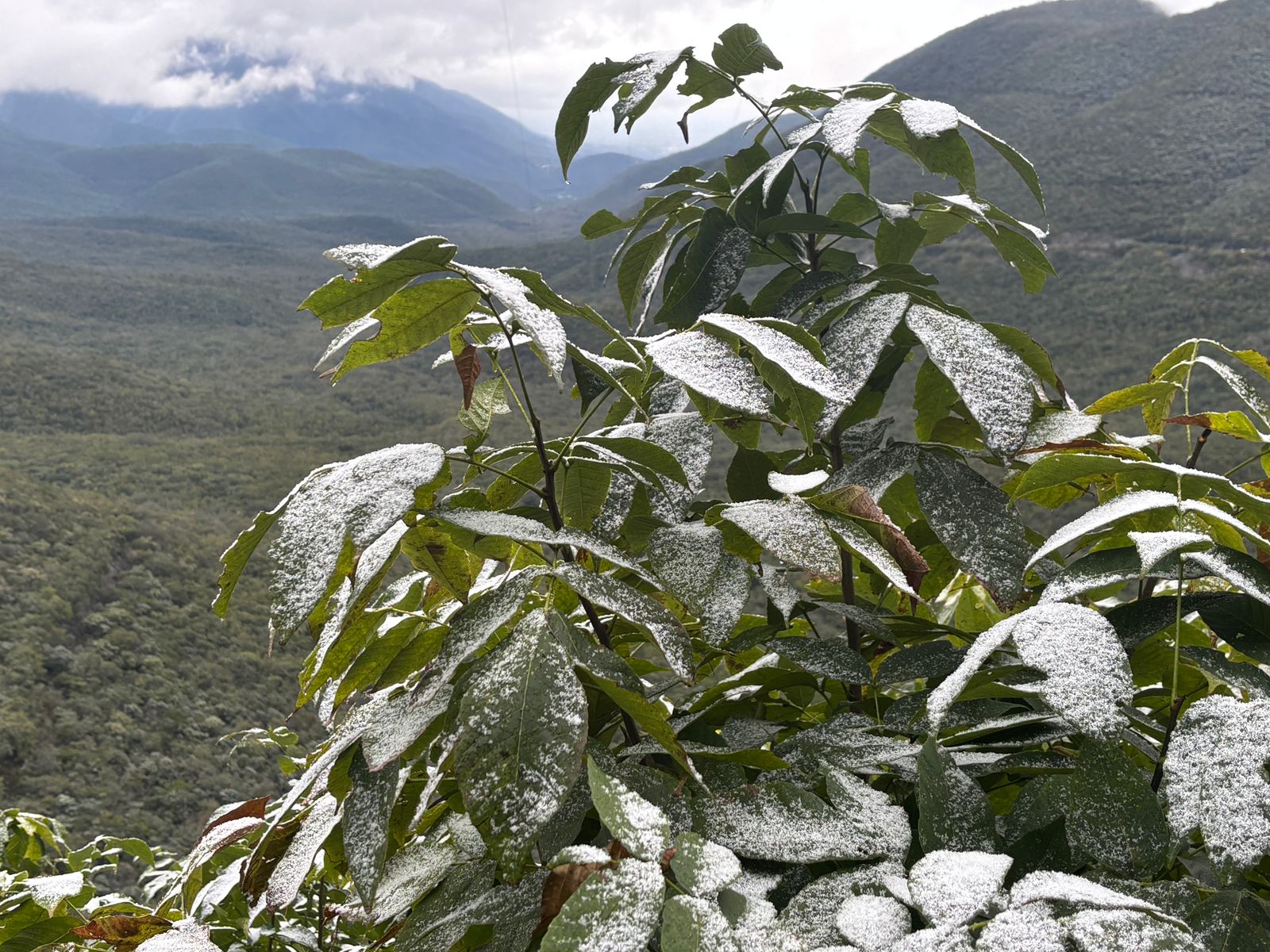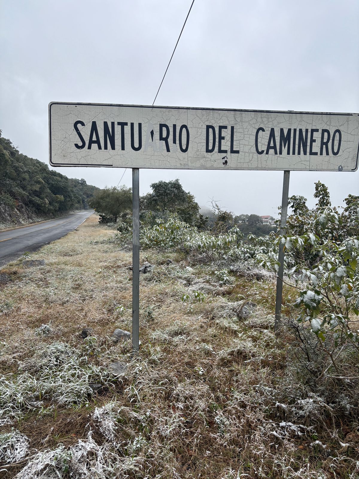Ciudad Victoria, 21 de enero de 2025.- A tan solo 15 kilómetros de Victoria la Sierra Madre Oriental se pintó de blanco por el paso del frente frío número 24 de la temporada que provocó la caída de aguanieve.