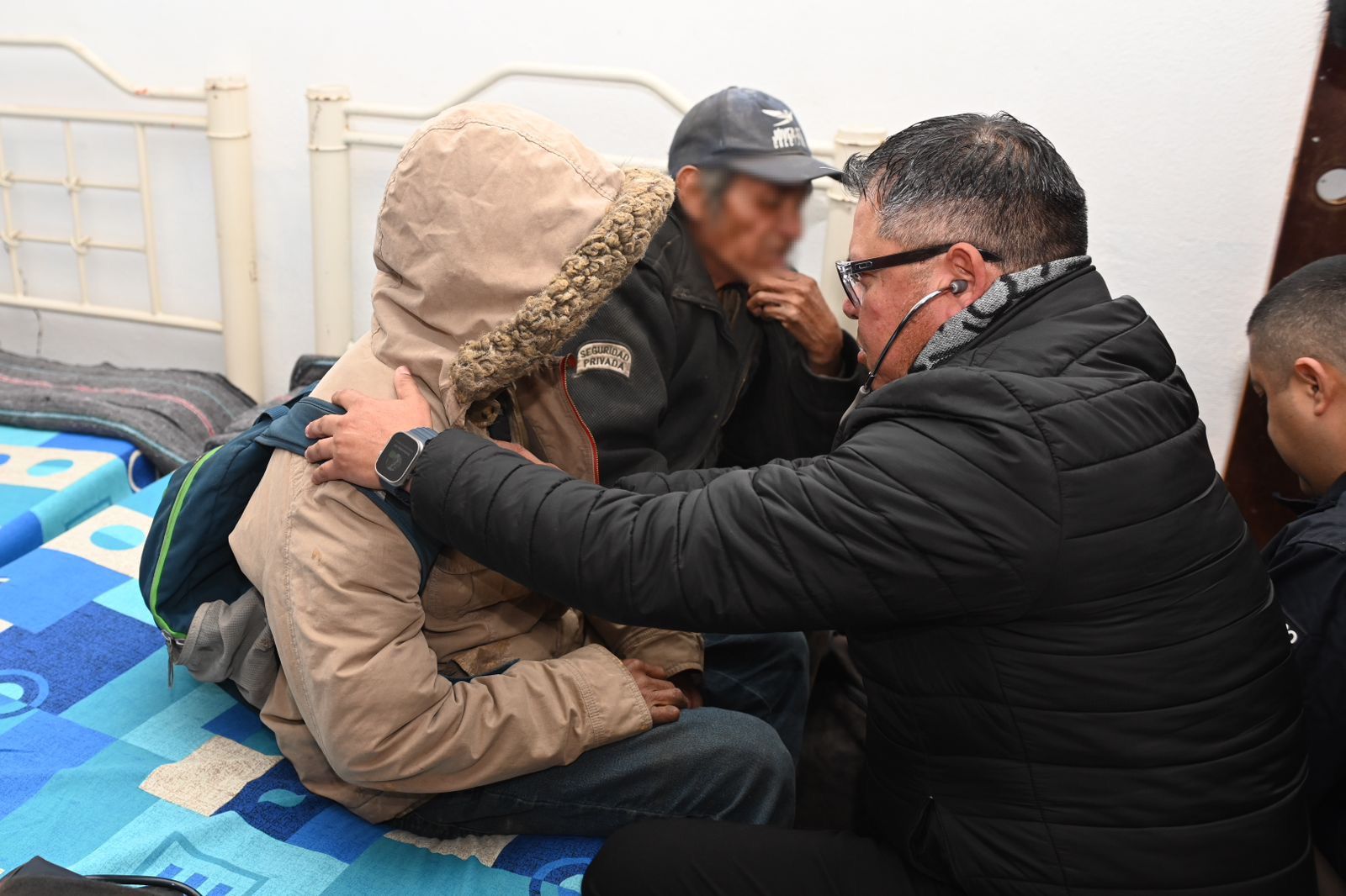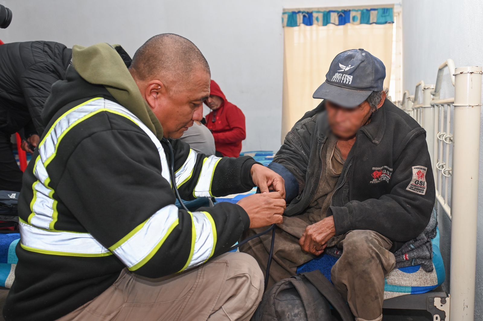 Al acudir a supervisar el refugio temporal, recibió a las primeras dos personas que acudieron al lugar para brindarles atención médica, alimento caliente, cobijo y poner a disposición el servicio gratuito de vacunación contra enfermedades respiratorias.