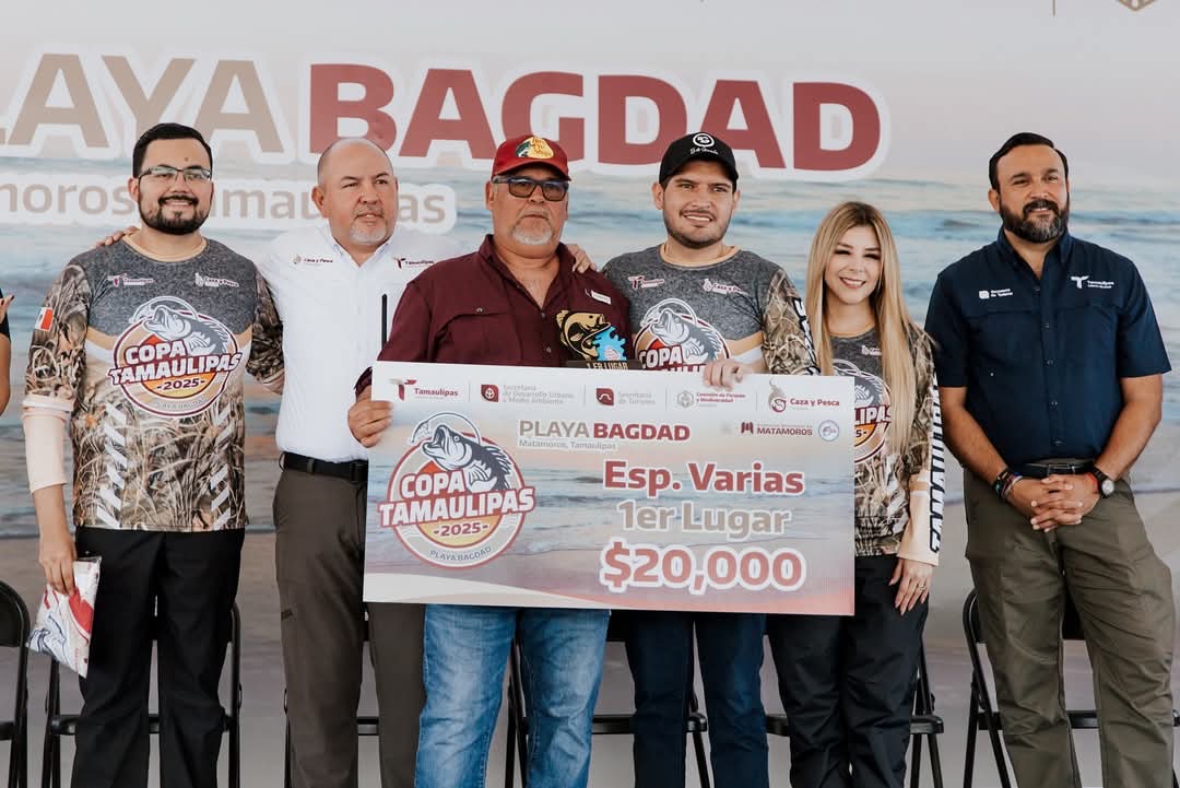 * El alcalde Alberto Granados Fávila y autoridades estatales reconocieron a los pescadores tamaulipecos con más de 300 mil pesos en premios y artículos deportivos